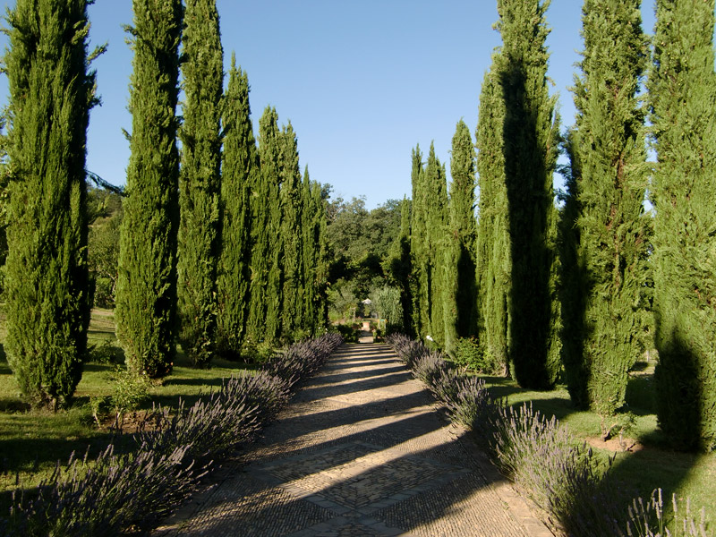 Une magnifique allée de pins parasols bi-centenaires, unique dans le Tarn, monte à l’assaut à la fois du ciel et des coteaux, pour conduire dans les bois où veille une statue de la Vierge, entourée par moments de faisans, sangliers, chevreuils et lièvres. Le losange de buis, vu du château, ouvert sur les vignes : fleuri d’avril à octobre, il précédé des escaliers avec chute d’eau. On se croirait en Toscane!<br /> Depuis plusieurs années l'Art y a aussi trouvé sa place, de nombreuses sculptures sont associées aux arbres et aux fleurs. A découvrir lors d'une promenade dans jardins.<br /> Les Jardins, privés, sont ouverts au public à l’occasion de nos journées portes ouvertes ou de nos visites guidées.
